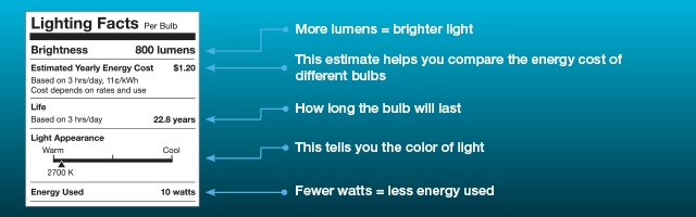 Many LED bulb boxes have a chart with all the information you need to choose the right LED for your home.