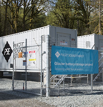 2015 के अंत में, PSE ने ग्लेशियर के व्हाटकॉम काउंटी शहर में मौजूदा सबस्टेशन से सटे 2-मेगावाट (MW), 4.4 मेगावाट-घंटे (MWh) लिथियम-आयन बैटरी सिस्टम पर निर्माण शुरू किया।